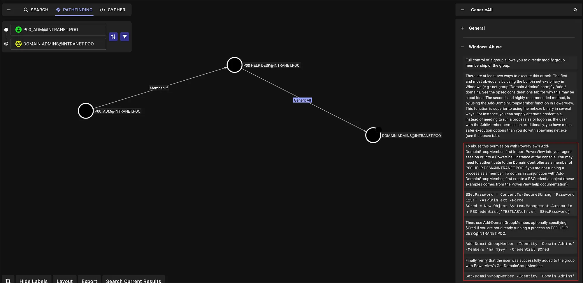 💭 Thought Process: “If you’re wondering where this came from: the Windows Abuse section in BloodHound is great for copy-pasteable commands to exercise rights like